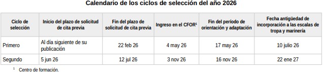 Desde Traintop, preparación de oposiciones para tropa y marinería, te dejamos el calendario de los ciclos de selección del año 2026, y si quieres ampliar información, también puedes consultar el BOE núm. 8 de enero de 2026